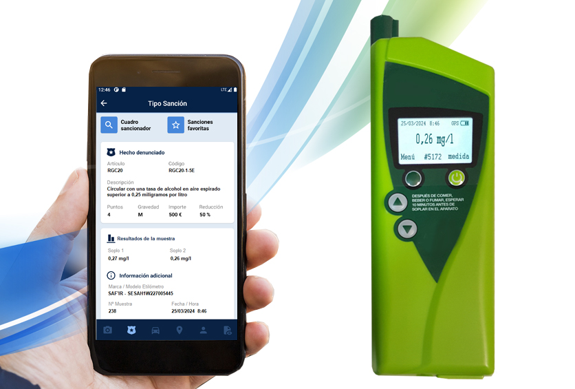 El Módulo Etilómetro del Sistema de Sanción Móvil de INTRICOM (SSMI) permite la introducción automática de datos de controles de alcoholemia, del etilómetro directamente al boletín electrónico.